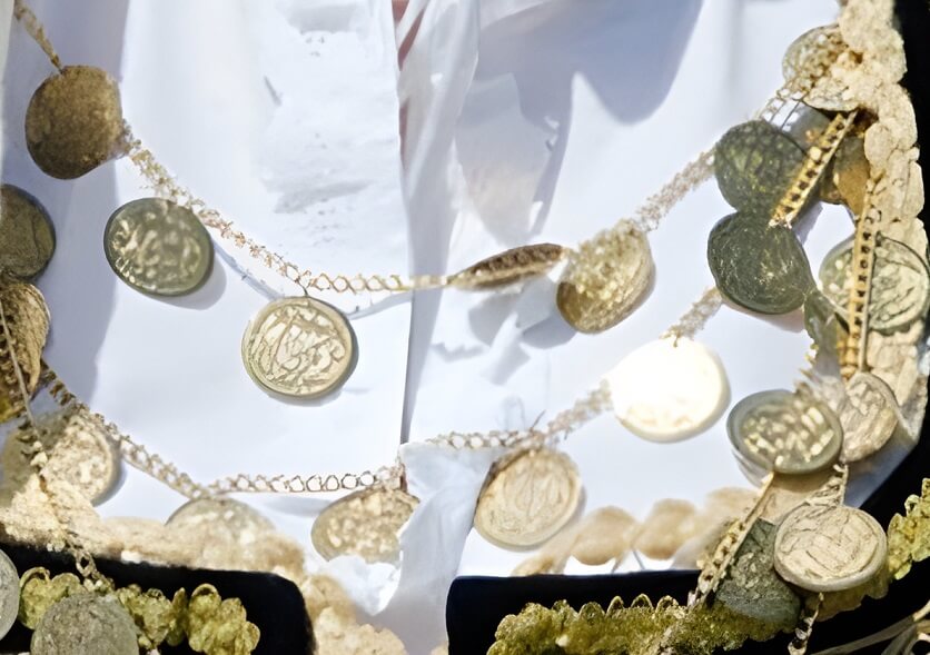 Τα χρυσά φλουριά, αυτά τα μικρά νομίσματα που βλέπετε στα ρούχα και στα μαντήλια, δεν ήταν μόνο για ομορφιά! Ήταν σαν μετρητά που φορούσαν πάνω τους! Παλιά, δεν υπήρχαν τράπεζες όπως σήμερα, οπότε οι οικογένειες μερικές φορές μετέτρεπαν τα χρήματά τους σε χρυσά φλουριά και τα κρεμούσαν στη φορεσιά. Με αυτό τον τρόπο, ήταν πάντα ασφαλή και έδειχναν τον πλούτο της οικογένειας. Επίσης, πιστεύεται ότι τα λαμπερά χρυσά αντικείμενα, μαζί με τα άλλα κοσμήματα, προστάτευαν το κορίτσι από το κακό μάτι ή την κακή τύχη. Ήταν σαν να φορούσαν τη δική τους μαγική ασπίδα! Φυσικά, μια φτωχή κοπέλα είχε λιγότερα κοσμήματα, αλλά ακόμα κι εκείνα τα λίγα είχαν μεγάλη αξία και ιστορία.